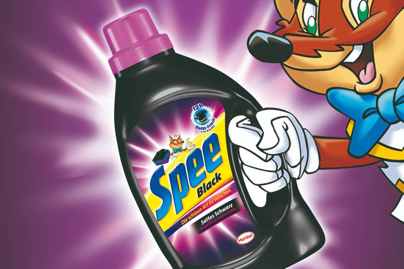 Einführungskampagne für Spee Black, das flüssige Spezialwaschmittel für Dunkles von Henkel. Da am Markt Coral, Burti und andere schon stark vertreten waren, wurde hier das große Orchester gespielt – und das über alle Kanäle: vom klassischem TV-Spot über Promotions, POS-Aufsteller, Anzeigen und Flyer bis hin zu einem interaktiven Online-Game, der Jagd nach dem fiesen Schwarzverbrecher „Dr. Grau“ und weiteren Social-Media-Aktionen und Promotions.